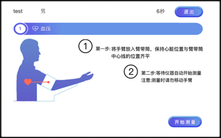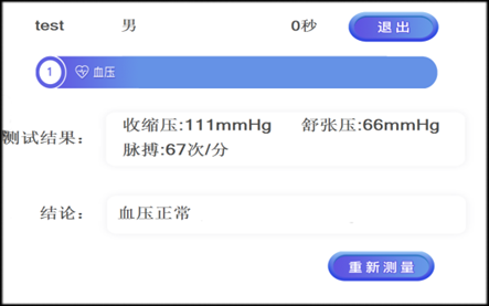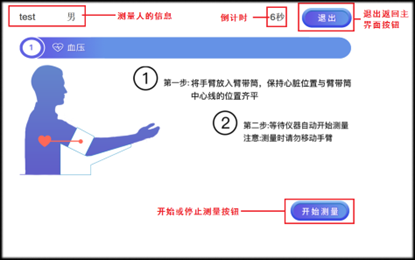 用户登录成功后,进入测量界面,可进行血压测量。如下图所示: